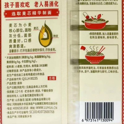 鲁花六艺活性麦芯精细面条600g