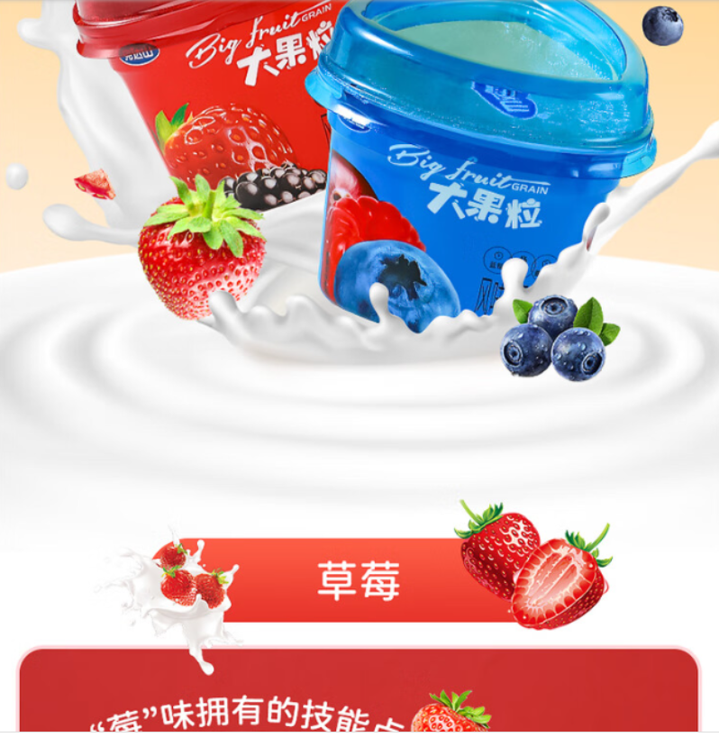 卖点:生牛乳发酵,活性乳酸菌;口感细腻爽滑,纯正清新;精选优质果酱,天然营养健康,果酱添加量10%以上; 大块果肉,吃着香甜,嚼着过瘾。