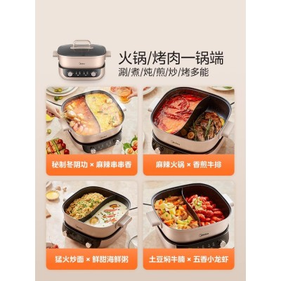 美的电火锅家用多功能煎炒分控速沸电热锅不粘分体式电煮锅鸳鸯锅