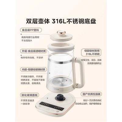 美的养生壶玻璃多功能恒温智能炖煮花茶煮茶器烧水壶电水壶煮茶壶