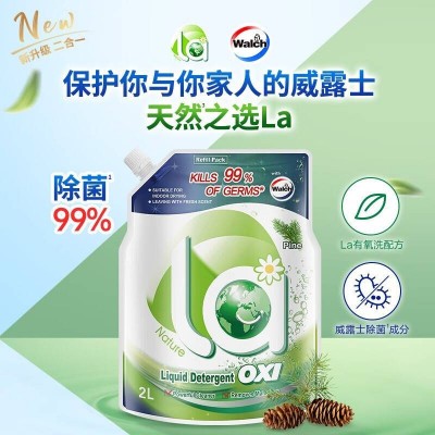威露士La有氧袋装抑菌除螨松木清香2L机洗手洗补充装家用[4斤)
