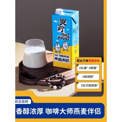 麦对燕麦奶谷物饮料0添加蔗糖咖啡大师1L*1盒燕麦露植物蛋白饮