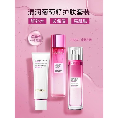 欧莱雅葡萄籽水乳套装补水保湿提亮肌肤护肤品爽肤水乳液洁面修护